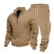 Completo da uomo con felpa con mezza zip e pantaloni cargo foderati in pile – Completo da lavoro comodo, in poliestere elasticizzato (S-XXXL, 8 colori)