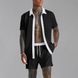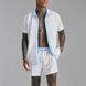 Completo da uomo estivo, casual, con camicia a maniche corte e pantaloncini in jacquard color block, per le vacanze
