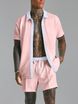 Summer Men's Fashion Casual Vacation Jacquard Color Block Short Sleeve Shirt and Shorts Set