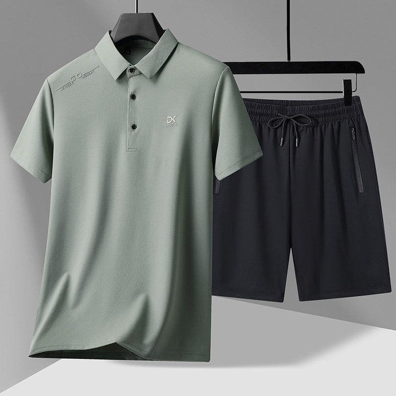 Completo da uomo estivo con pantaloncini a maniche corte in seta ghiacciata, casual da lavoro, due pezzi, vestibilità ampia e sottile, per papà di mezza età