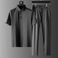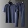 Completo da uomo in seta ghiacciata, leggero, di lusso, di alta gamma, estivo, a maniche corte, a righe sottili, due pezzi_voghion.com
