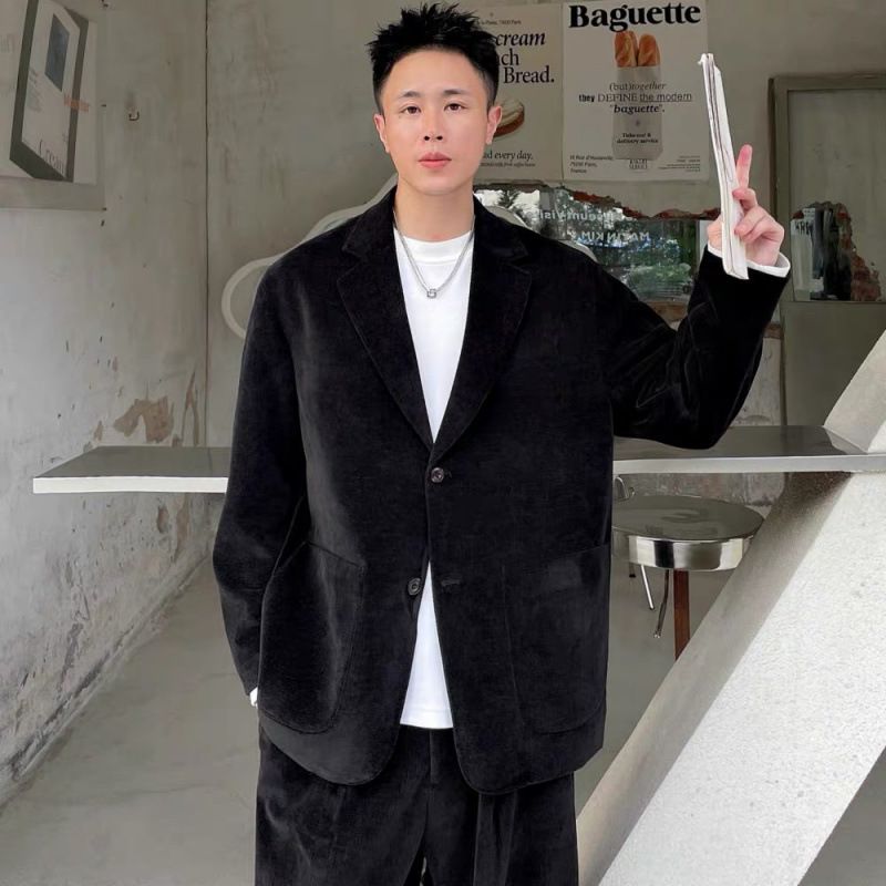 Product Source Category:In Stock,Brand:Weikun,Item Number:paMijZAf,Front placket:Two single-breasted buttons,Suitable for the season:Four Seasons,Is it in stock?:No,Fabric Name:Corduroy,Main fabric composition:Acetate fiber,Content of the main fabric components:Other,Applicable Scenarios:Casual,Collar Style:Notch Lapel,Design:Form-fitting,Year/Season of Release:Autumn 2024,Color:Black top + pants, coffee-colored top + pants,Size:M,L,XL,2XL,3XL,4XL,5XL,Is it exclusively for cross-border export supply?:No,Style:Minimalist,Original Design Source:yes,Is there a quality inspection report?:No,Material function:Other