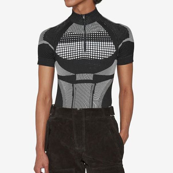 Yoga outfit, loose semi high neck, tight fitting fitness suit, short sleeved T-shirt, men's elastic breathable T-shirt, zippered up