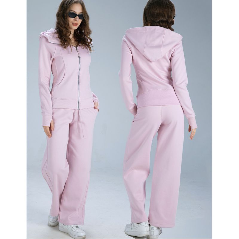 Autumn Winter New Gold Zipper Yoga Sports Set for Women Solid Color Top and Sweatpants Two-Piece Set with Fleece