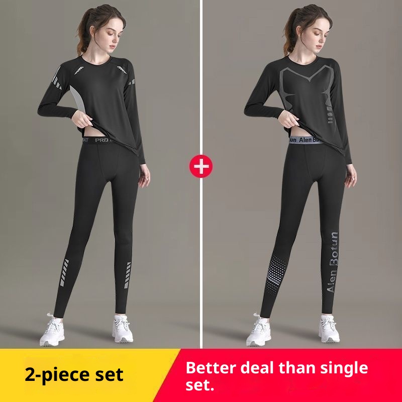 Completo da yoga da donna ad asciugatura rapida, per corsa, sport, autunno, aderente, a maniche lunghe, per attività all'aperto, escursionismo, jogging mattutino, palestra