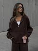 Street Style Casual Solid Color Long Sleeve Zipper Hoodie Jacket Tie Wide-Leg Pants Two-Piece Set