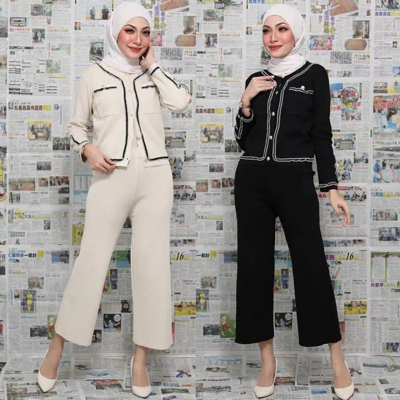 Completo due pezzi con top in maglia patchwork con tasche e pantaloni larghi casual corti per donna musulmana