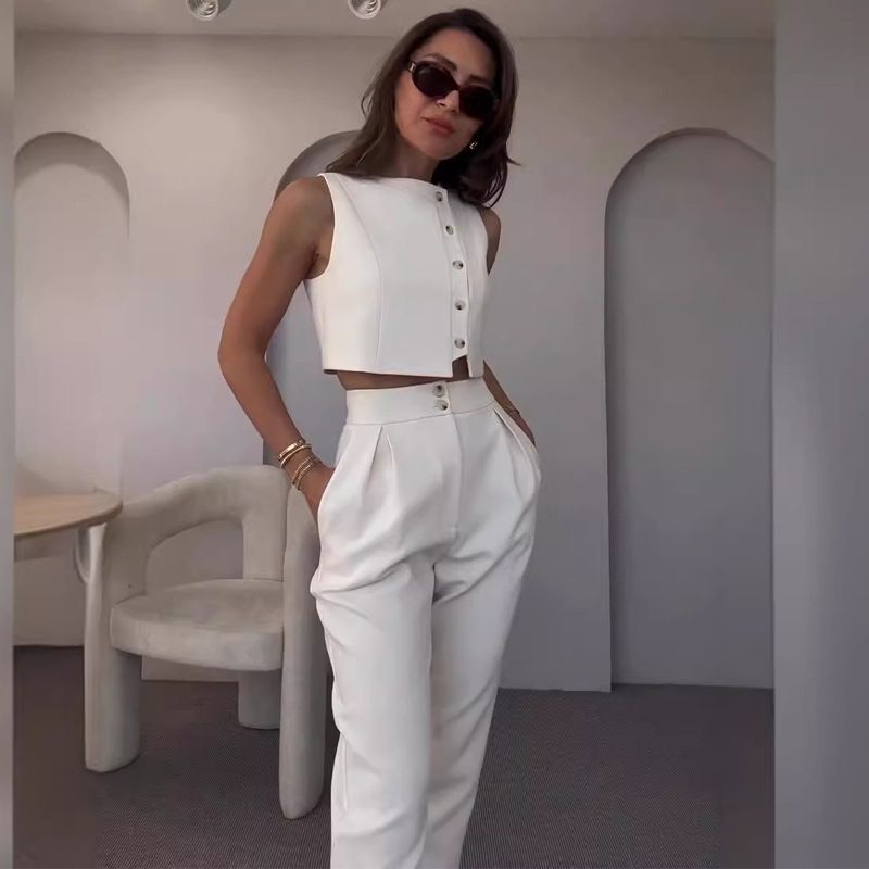 Women's Fashion 2024 New Spring Summer Sleeveless Tank Top High Waist Nine-point Pants Two-piece Set