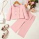 Completo due pezzi per bambine, in tinta unita, con colletto quadrato, a palloncino, a maniche lunghe, con giacca e pantaloni a gamba larga, per la primavera e l'autunno della mamma e dei bambini