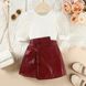 Completo estivo per bambine con top a maniche in rete alla moda per mamma e bambini, top a maniche in rete alla moda, gonna asimmetrica in similpelle, pantaloni, set due pezzi