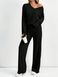 Completo in maglia da donna composto da due pezzi: top a coste con scollo a V e pantaloni a gamba dritta, elegante outfit casual per l'autunno