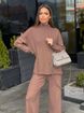Completo in maglia oversize con orlo diviso, maglione a maniche lunghe e pantaloni da salotto (S/M/L), minimalismo accogliente per autunno/inverno