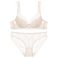 Completo intimo da donna in pizzo francese, sexy e di piccole dimensioni, con reggiseno ad anello in acciaio morbido color latte e arricciato sui lati