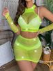 Completo, minigonna con strass, ultra sottile, seducente, rosa, taglia grande, con maniche, lingerie trasparente in pizzo da donna