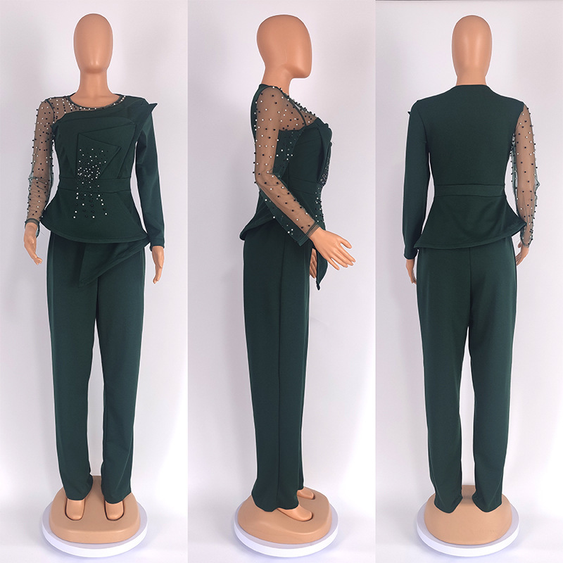 Beaded Mesh Material: The beaded mesh fabric adds a touch of elegance and texture, enhancing the overall appeal of the outfit.