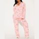 Completo pantalone kawaii in modal da donna – Set camicetta e pantaloni a maniche lunghe con bottoni (S-XXL, stampa anime, traspirante, rosa/lavanda/carne)