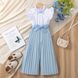 Completo per bambine con top peplo con maniche a palloncino e pantaloni palazzo a gamba larga – Completo alla moda con cintura (4-7 anni, azzurro cielo)