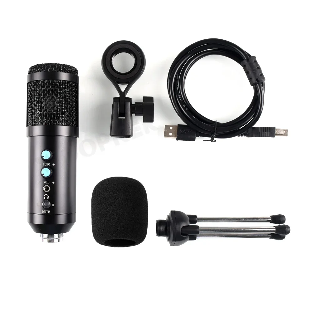 Microfono a condensatore per computer con treppiede, microfono USB per studio karaoke per kit di registrazione di giochi su YouTube
