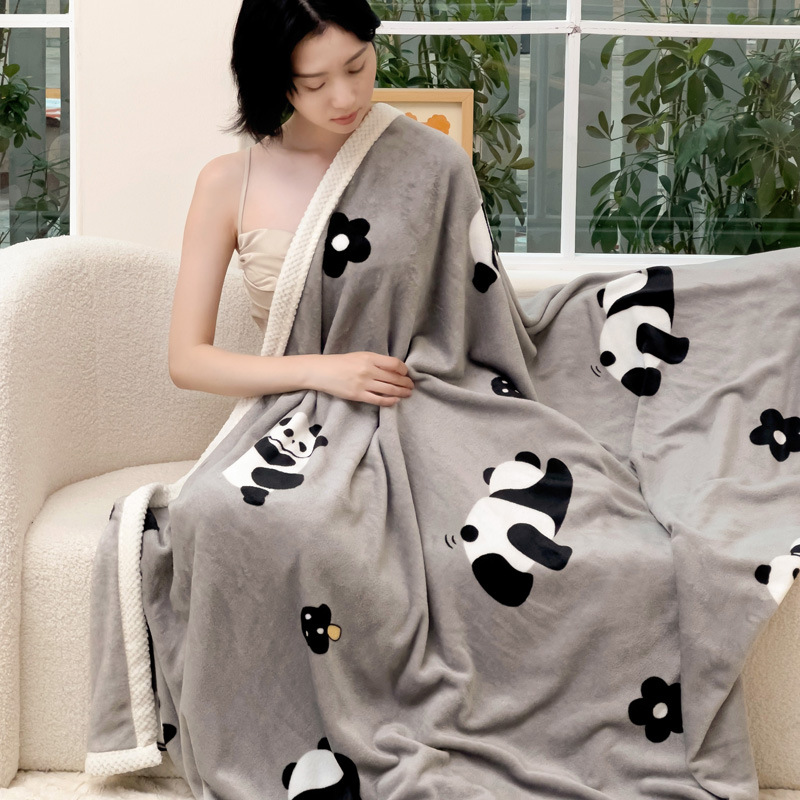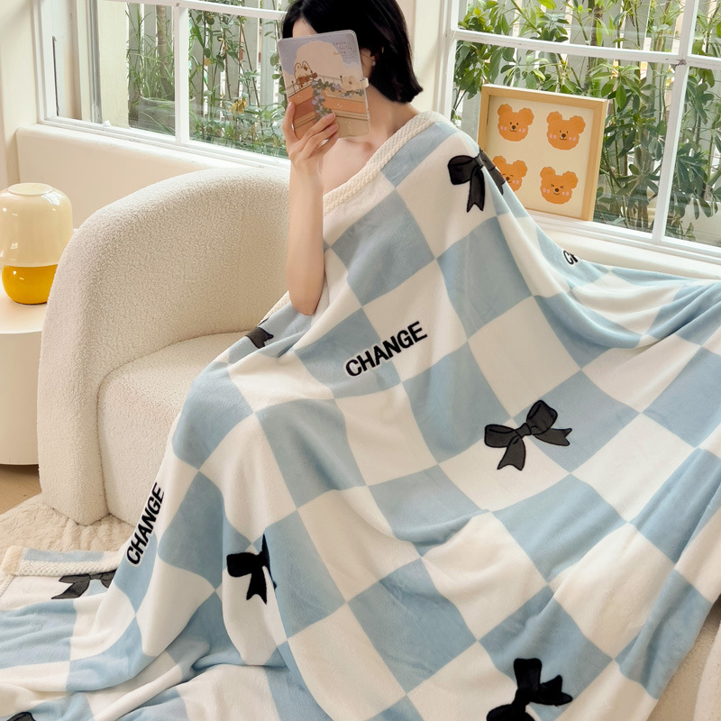 Coperta in velluto di latte con bordo in velluto Beibei, adatta alla pelle, doppia faccia, per ufficio, divano, studente, inverno, spesso e caldo, lenzuolo