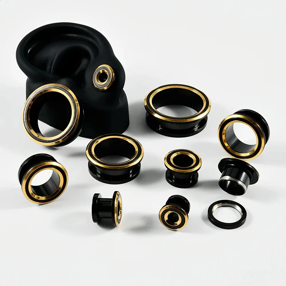 Coppia di dilatatori per orecchie a vite bicolore con inserti in acciaio inossidabile turchese, dilatatori per piercing, gioielli per il corpo