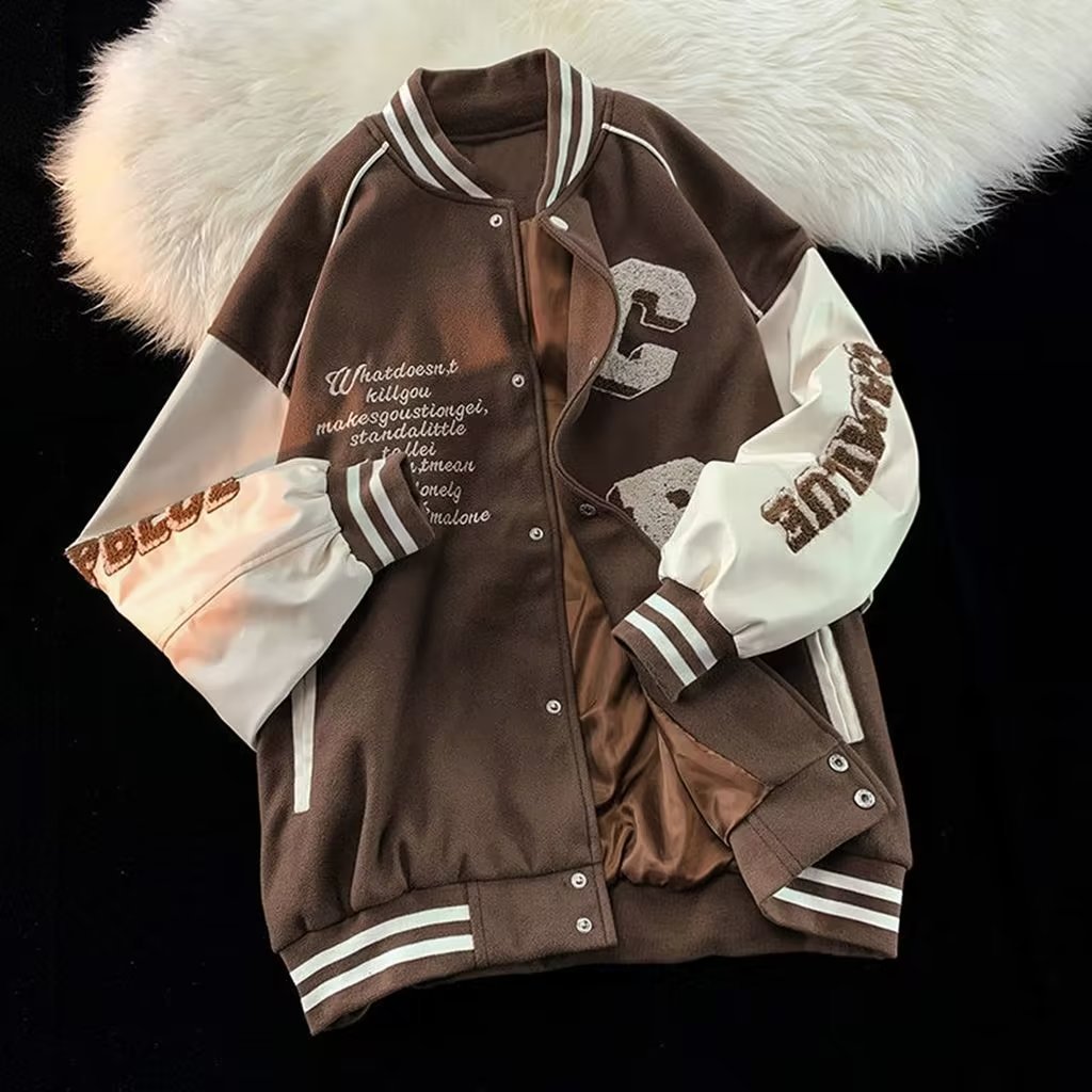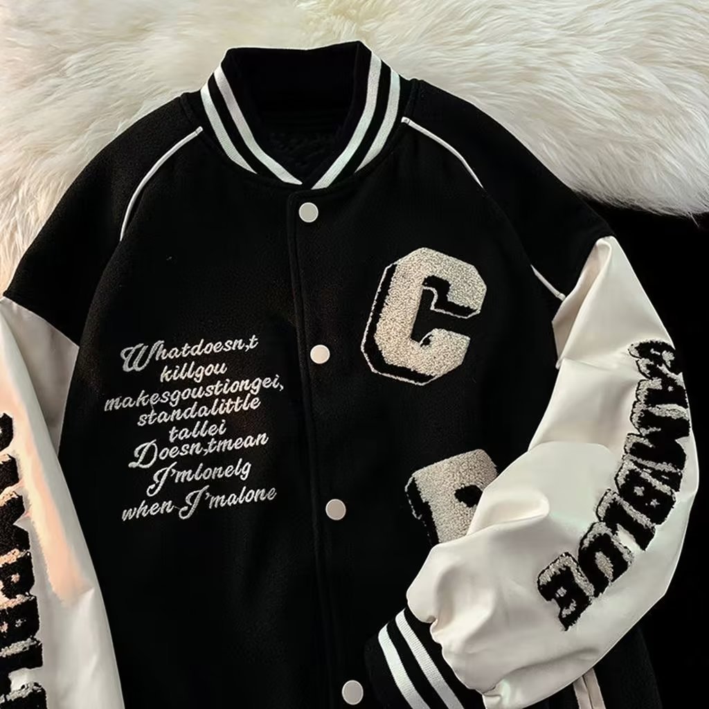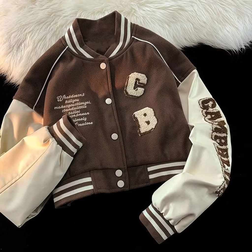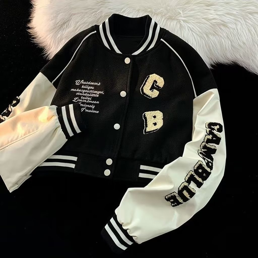 Coppia diversa indossa giacca da uomo in jersey da baseball corta ricamata primavera e autunno di fascia alta, berretto francese Roora