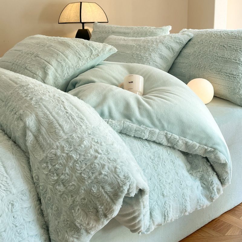 Copripiumino in velluto di latte spesso invernale in pelliccia di coniglio intagliata di classe A, quattro pezzi, Nantong Coral Fleece Bed