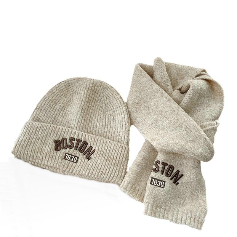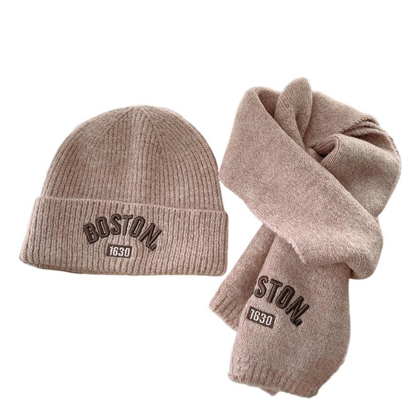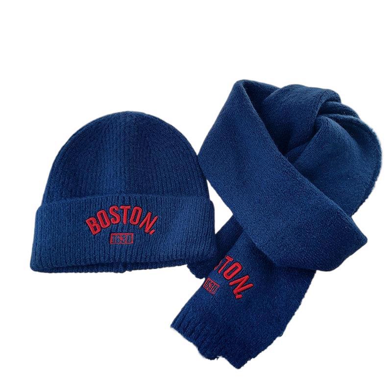 Korean autumn and winter new personalized letter embroidered children's knitted scarf for boys and girls, solid color thickened warm scarf for babies