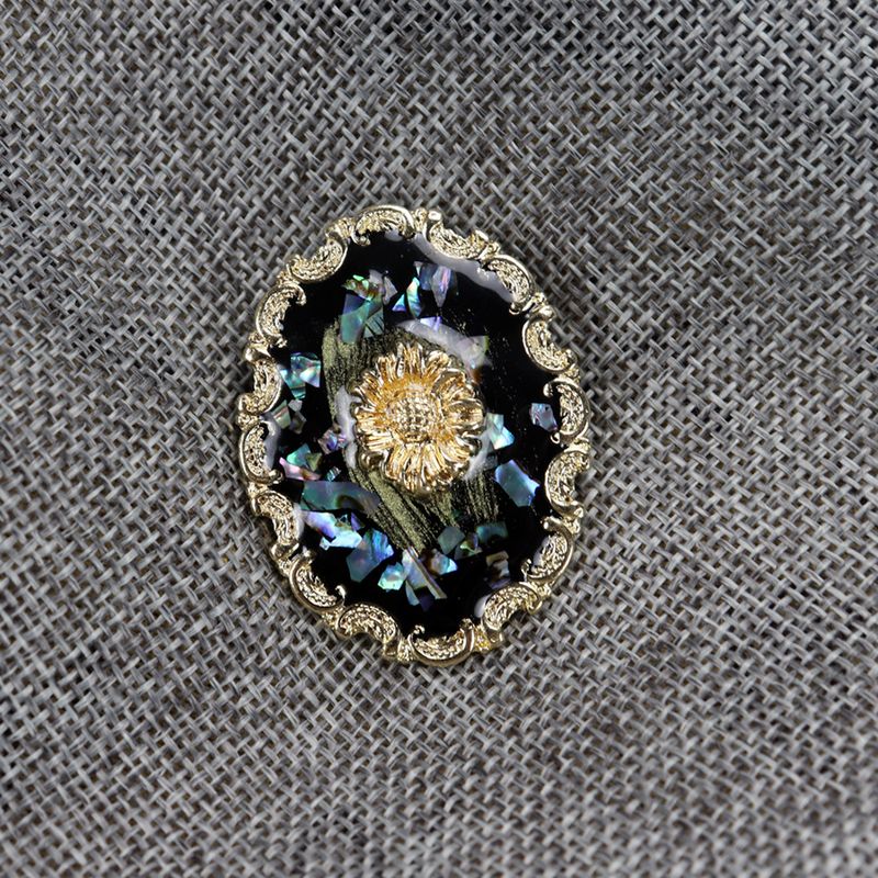 Palace photo frame abalone shell sunflower painting style relief enamel drip oil brooch chest flower girl