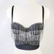 Corsetto avvolgente con catena di diamanti e nappe, design francese, corsetto con perline a spina di pesce, con reggiseno imbottito e top modellante