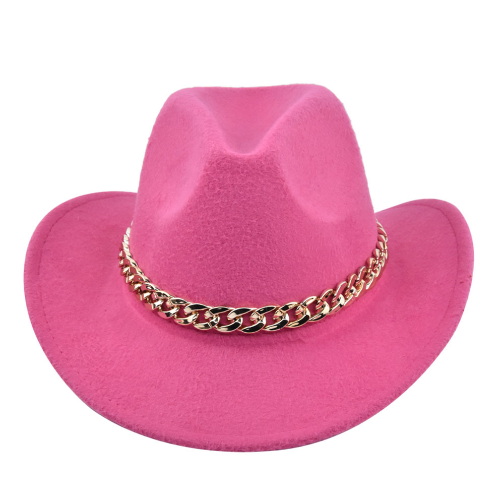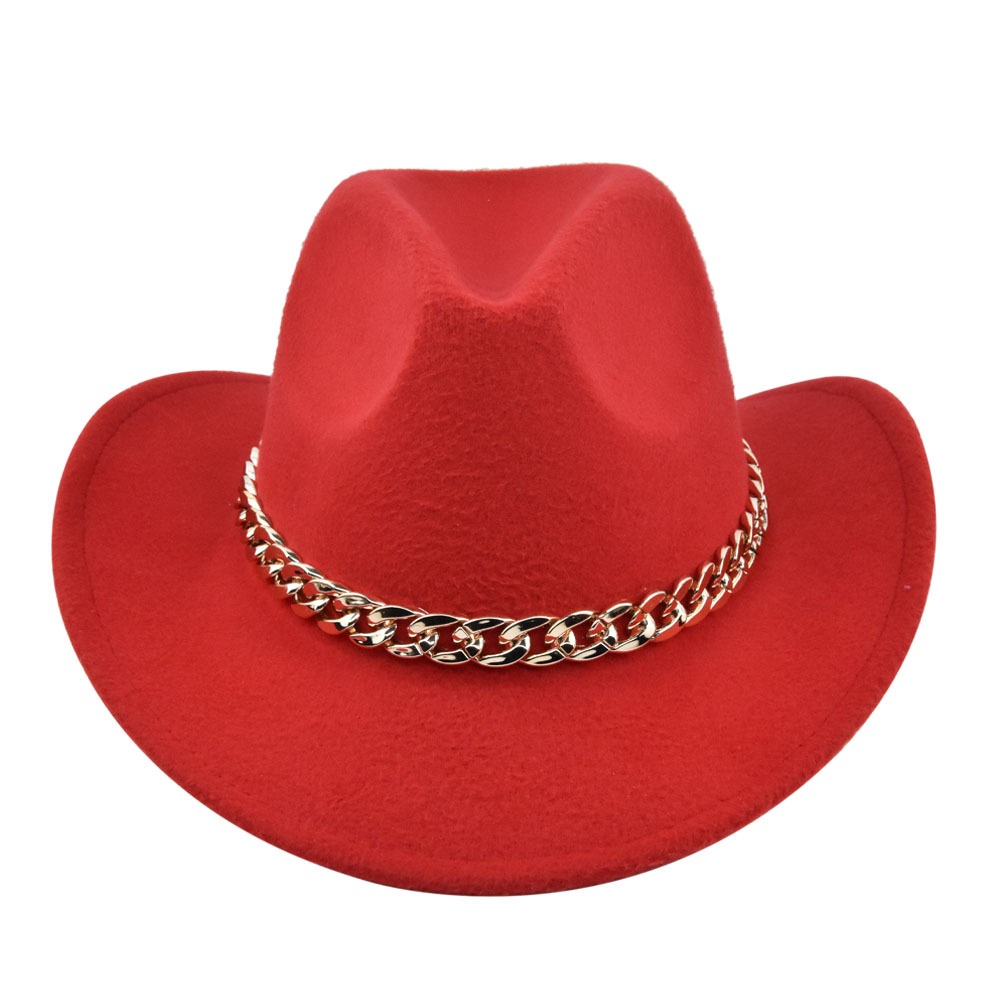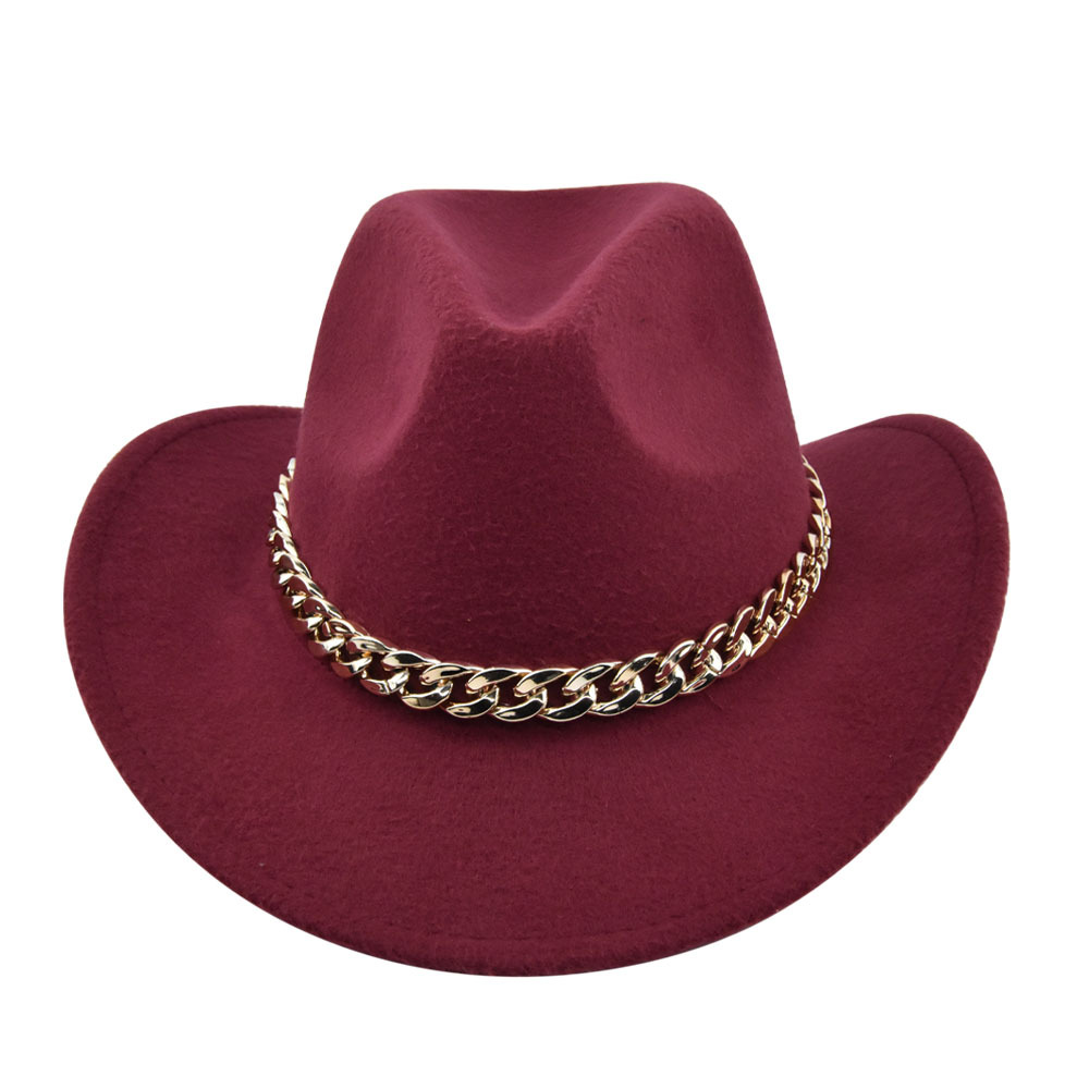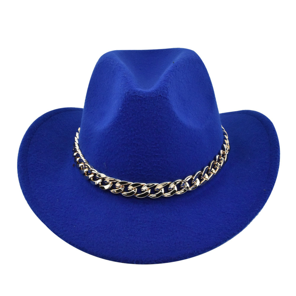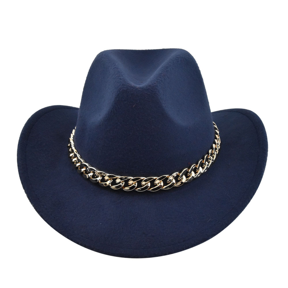 Cappello da cowboy jazz in feltro di lana con catena placcata in oro, cappello da cowboy