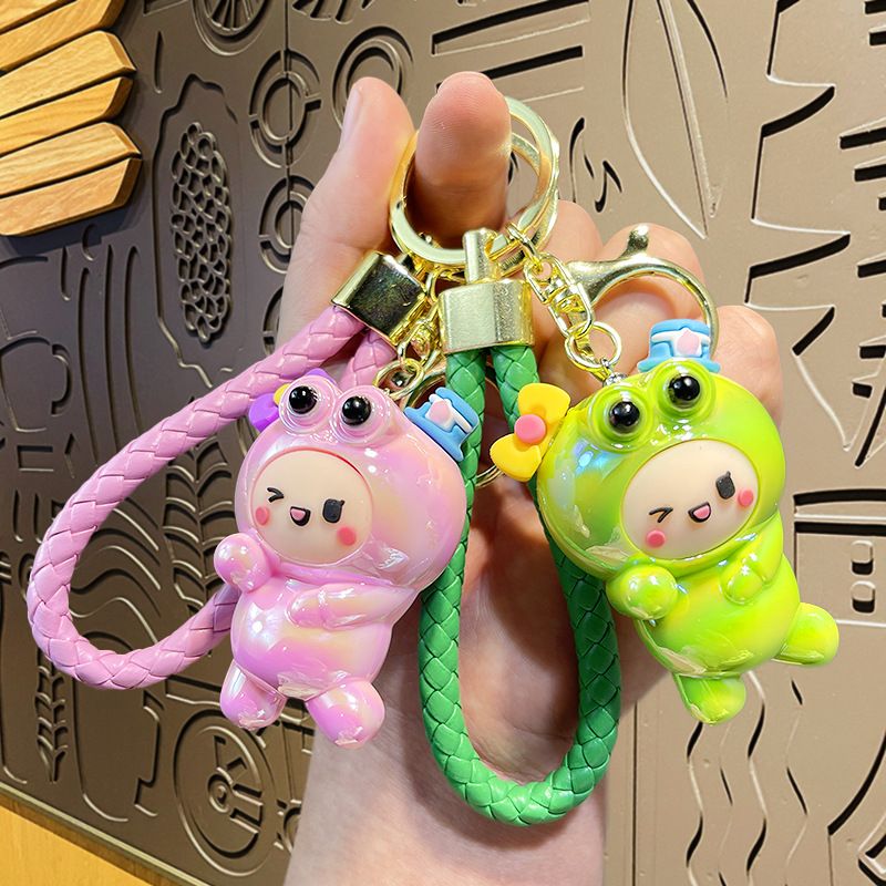 Creativo cartone animato carino acrilico rana testa copricapo ciondolo giocattolo piccolo regalo gioielli portachiavi