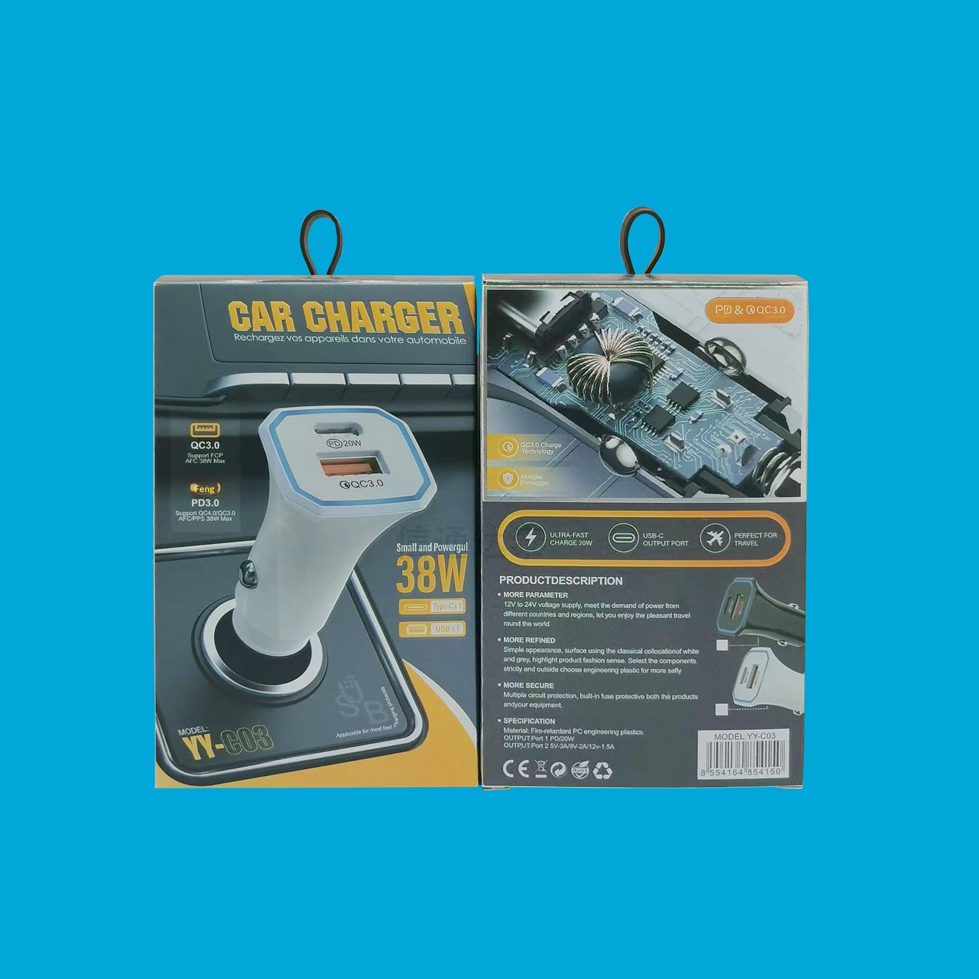 Cross-border dual-port PD car charger, Type-C single-port USB car charger, 38W/20W fast multi-function charging head