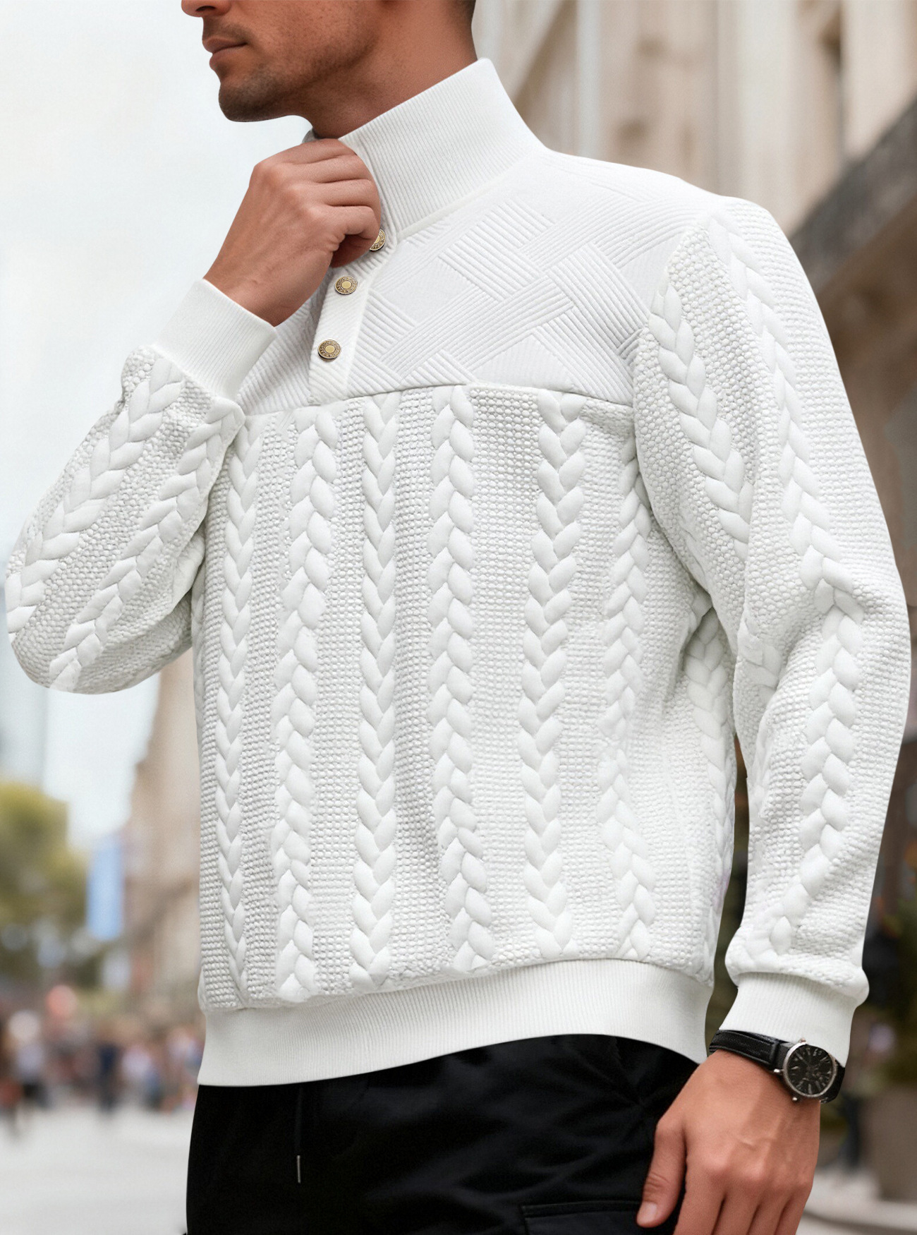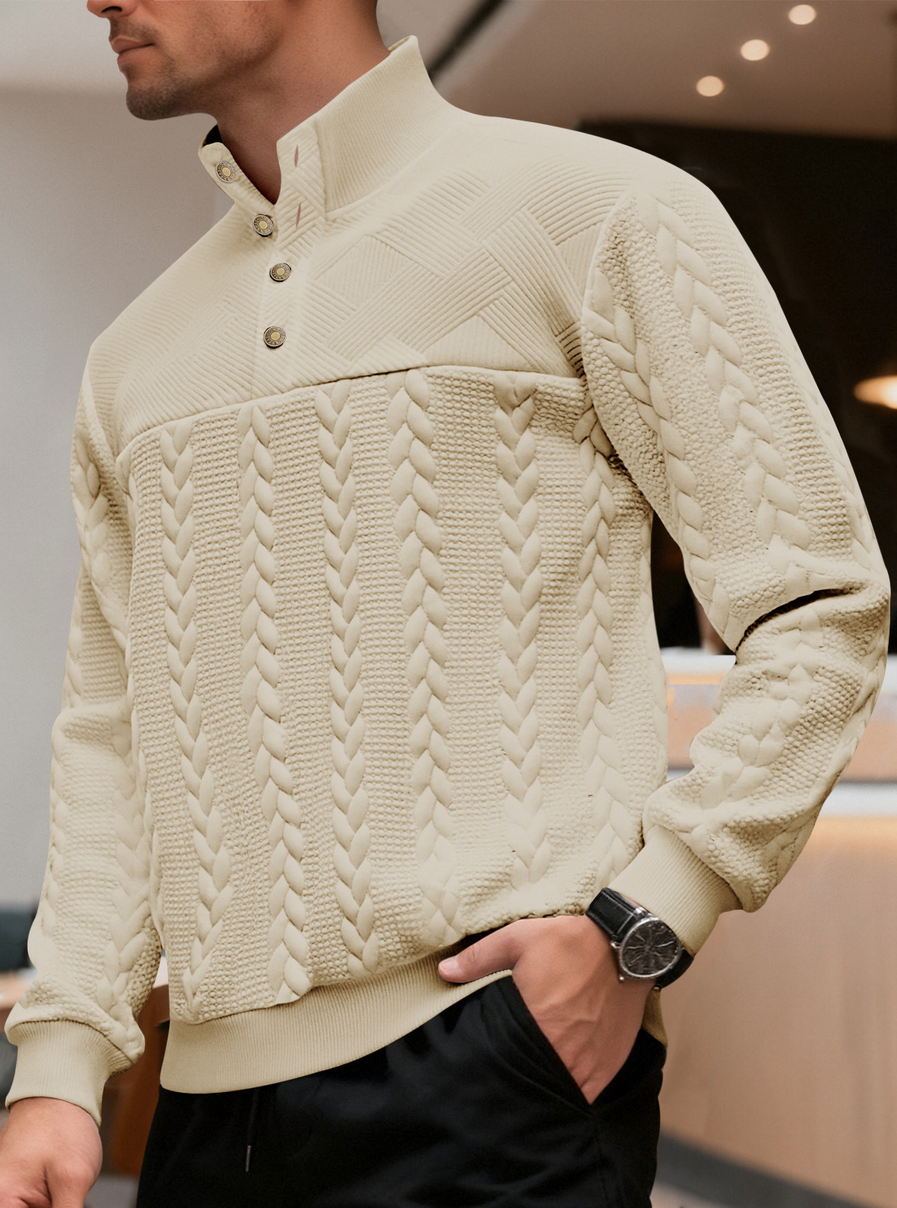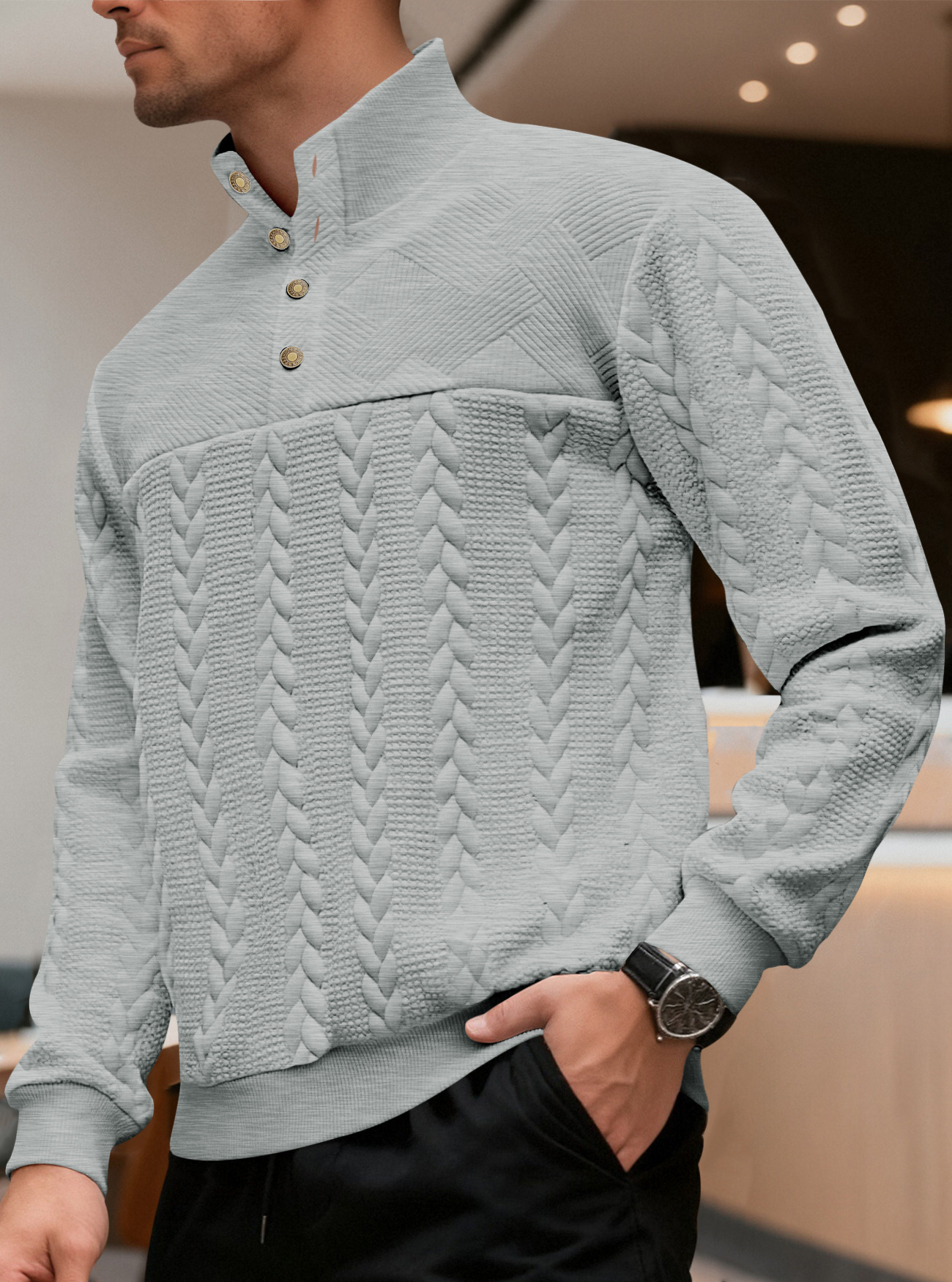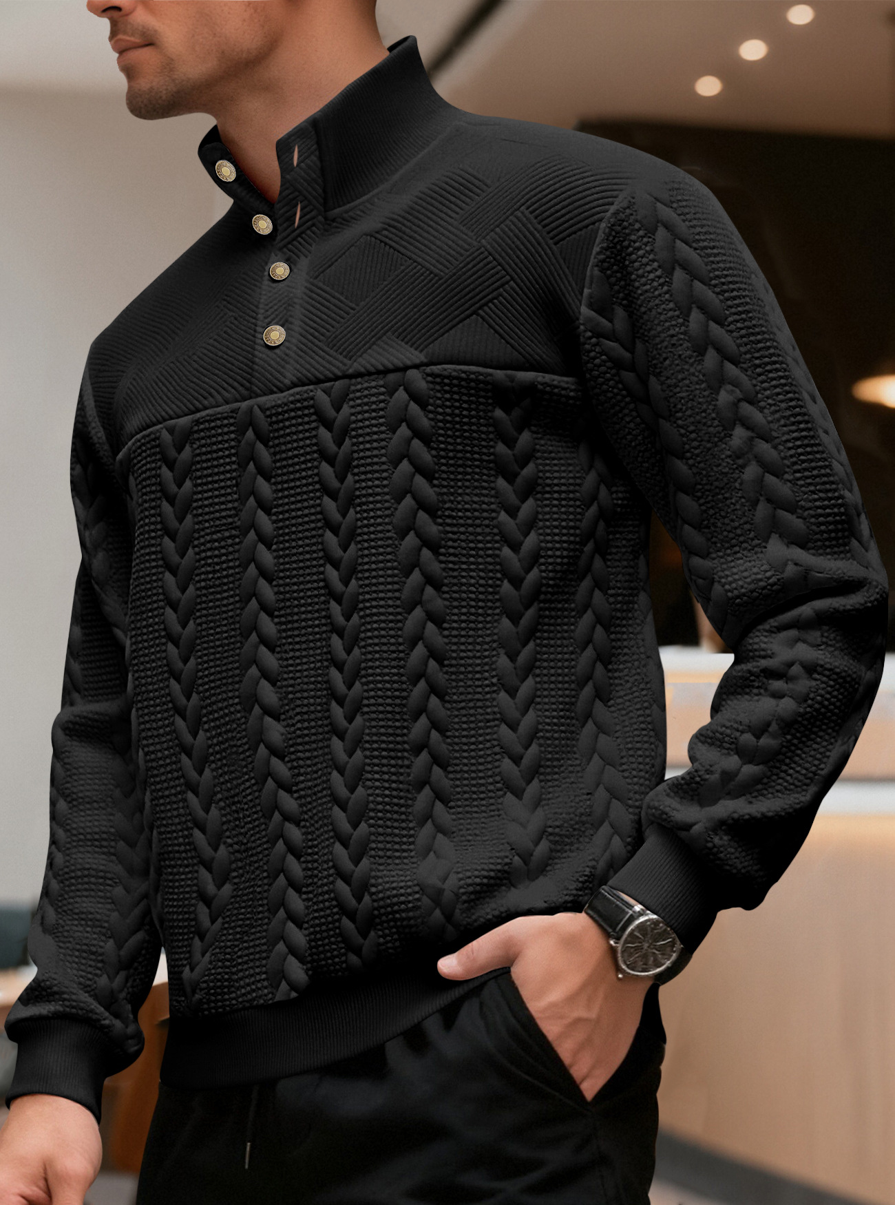 Pullover casual con colletto alla coreana e bottoni, stile transfrontaliero europeo e americano, tinta unita, lavorazione a maglia ampia e patchwork.