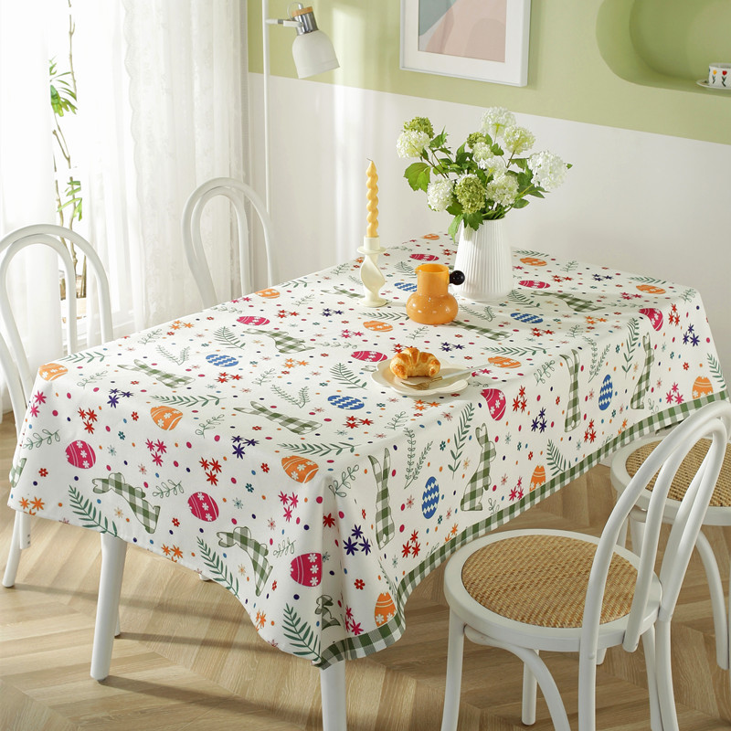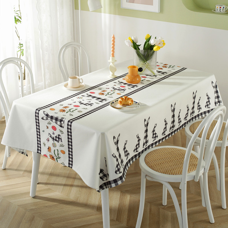 Tovaglia da caffè impermeabile in poliestere con stampa a quadri pasquali, coniglietti e fiori primaverili. Copertura per tavolo da pranzo