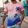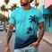 Fornitura transfrontaliera di maglietta a maniche corte in stile hawaiano con albero di cocco per uomo, estiva, con stampa sfumata, stile spiaggia, casual, a maniche corte, da uomo