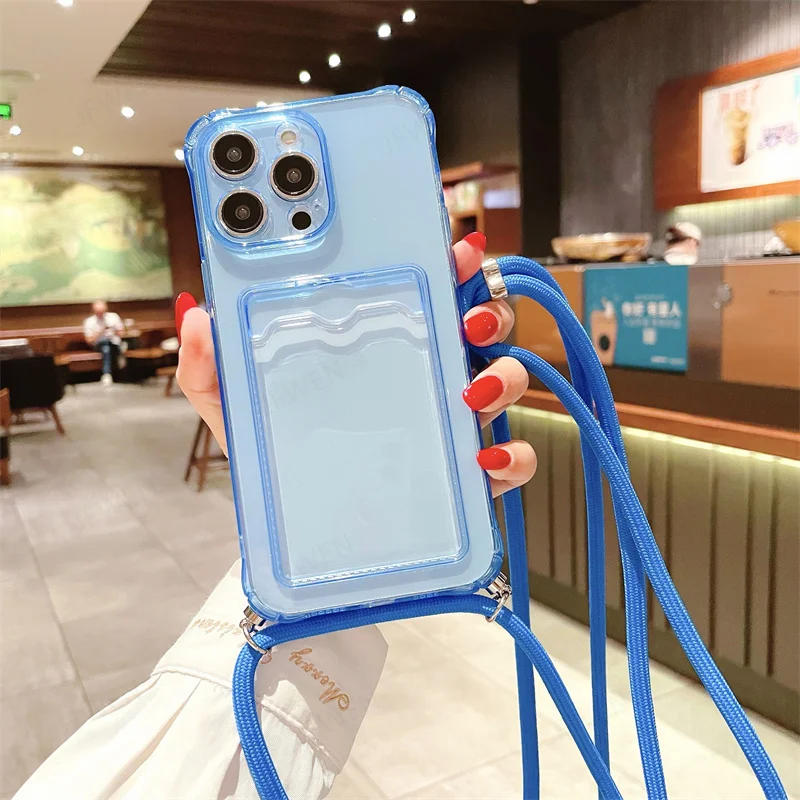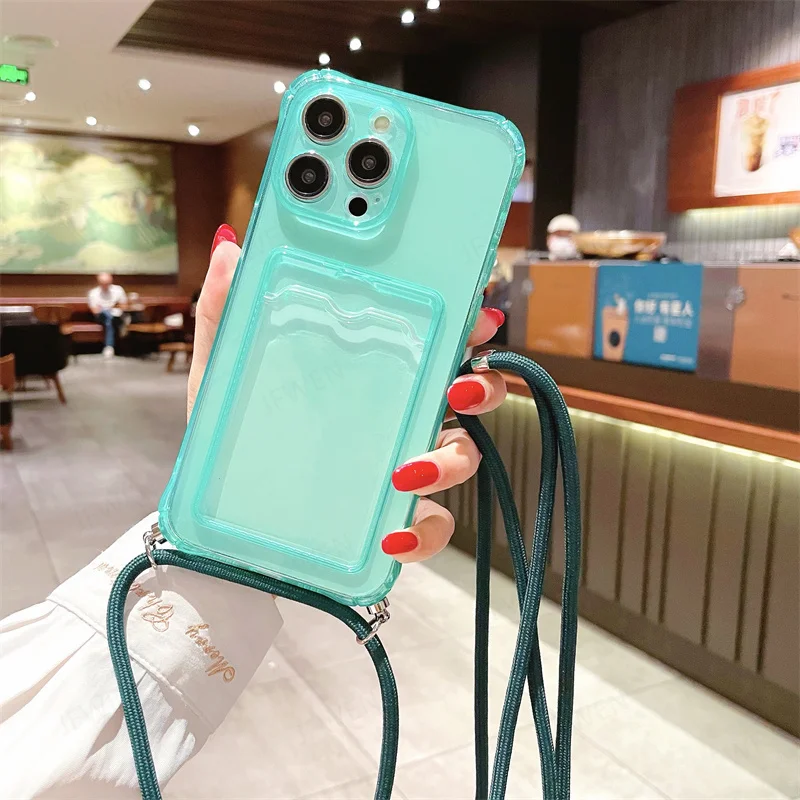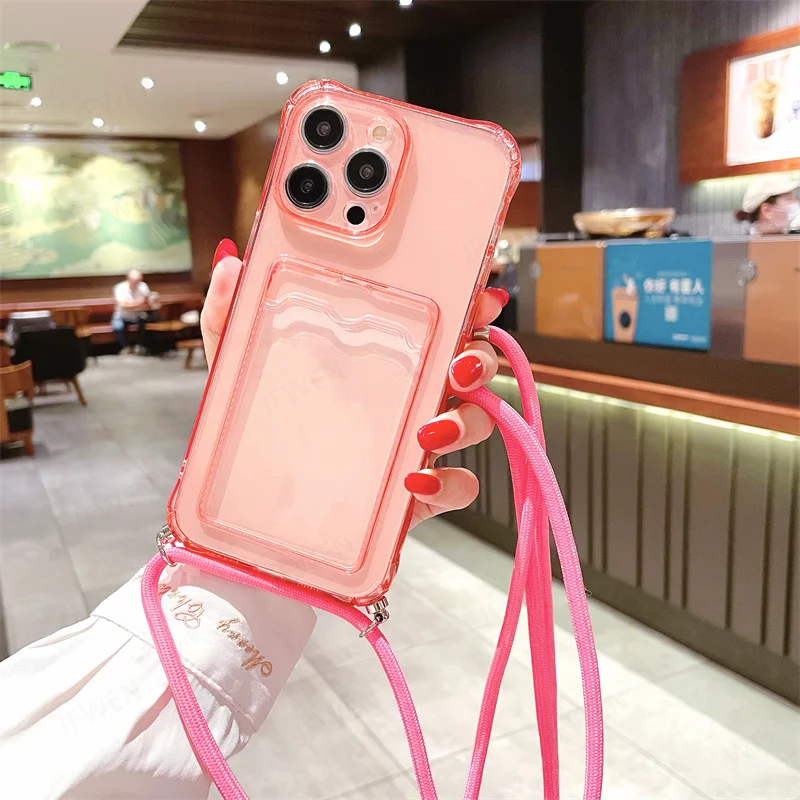 Crossbody Lanyard Card Bag Phone Case For iphone 15 14 Plus 13 12 Mini 11 Pro Max Shockproof Soft TPU Clear Back Cover