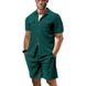 CT New Summer Uomo Maglia a nido d'ape a tinta unita con taschino e pantaloncini a maniche corte Set due pezzi