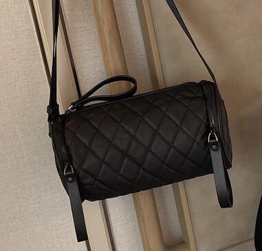 Lingge Cylinder Bag Women's Crossbody Bag Pillow Bag Oxford Nylon Fabric 2023 New Water Bucket Bag Checkerboard