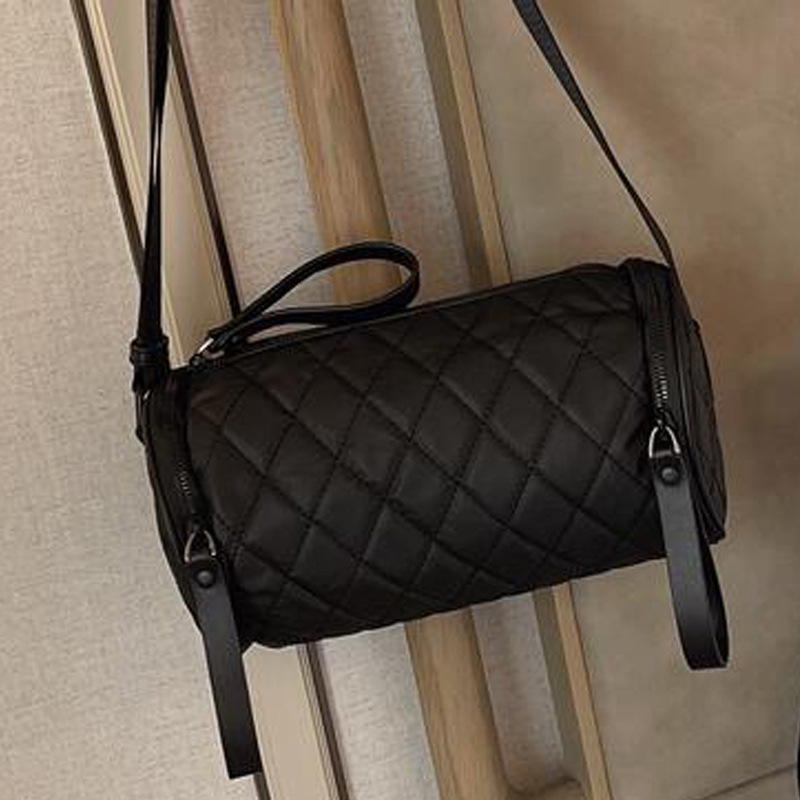 Lingge Cylinder Bag Women's Crossbody Bag Pillow Bag Oxford Nylon Fabric 2023 New Water Bucket Bag Checkerboard