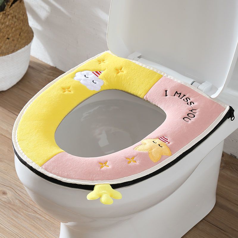 Universal Household Toilet Seat Waterproof Antibacterial Toilet Cushion Cute Toilet Cover Zipper Type Autumn Winter Thickened Toilet Ring
