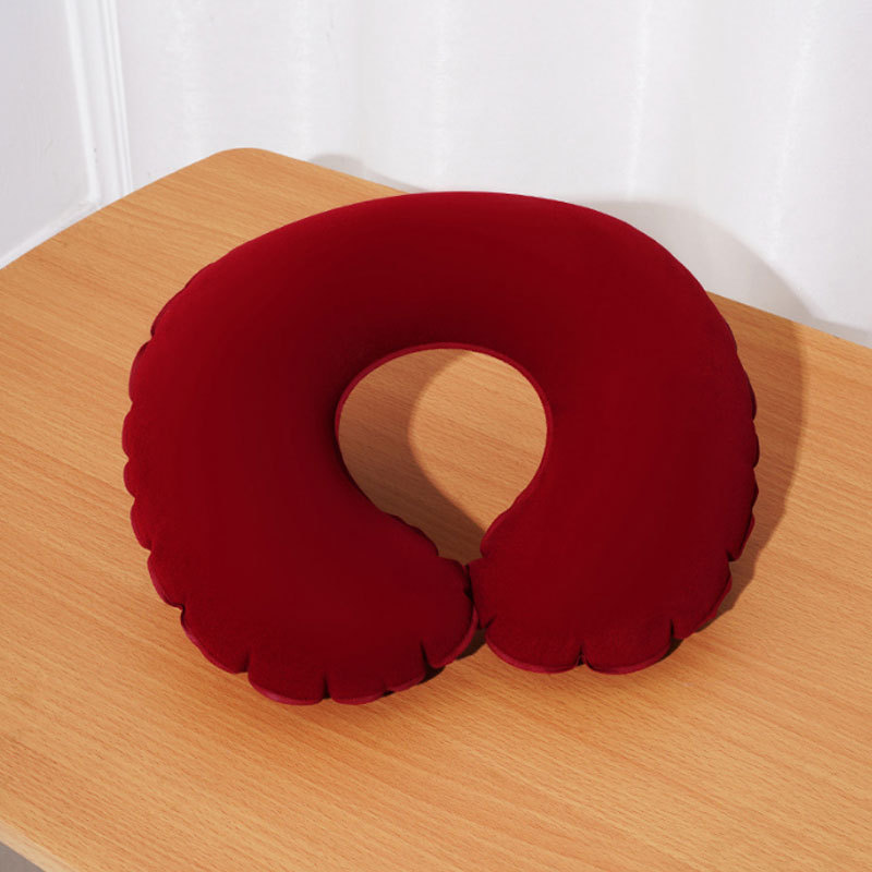 Cuscino da viaggio gonfiabile a forma di U per esterni, portatile, floccato, ideale per il relax al collo, stile aereo, Three Treasures Wholesale