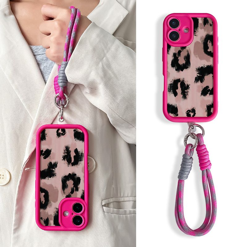 Custodia con cordino da polso con catena per iPhone 16 Pro Max Plus, custodia per telefono antiurto in silicone morbido con leopardo sexy_voghion.com