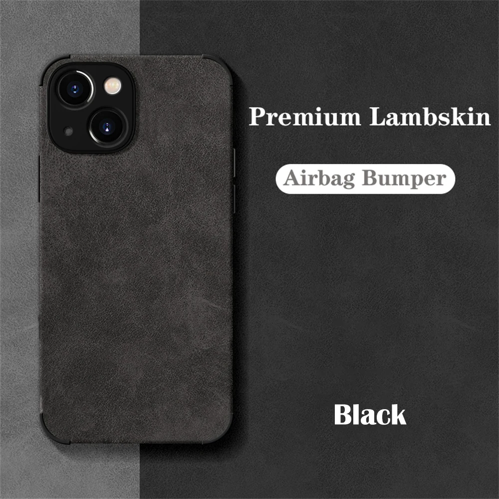 Luxury Shockproof Matte Lambskin Leather Case for iPhone 13 12 11 Pro X XR XS Max 7 8 Plus Soft Suede Fabric Vintage Cover Funda