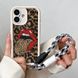 Custodia per telefono con cordino per iPhone 16 Pro Max Plus con motivo leopardato e labbra rosse sexy, morbida in TPU, con cinturino da polso, antiurto