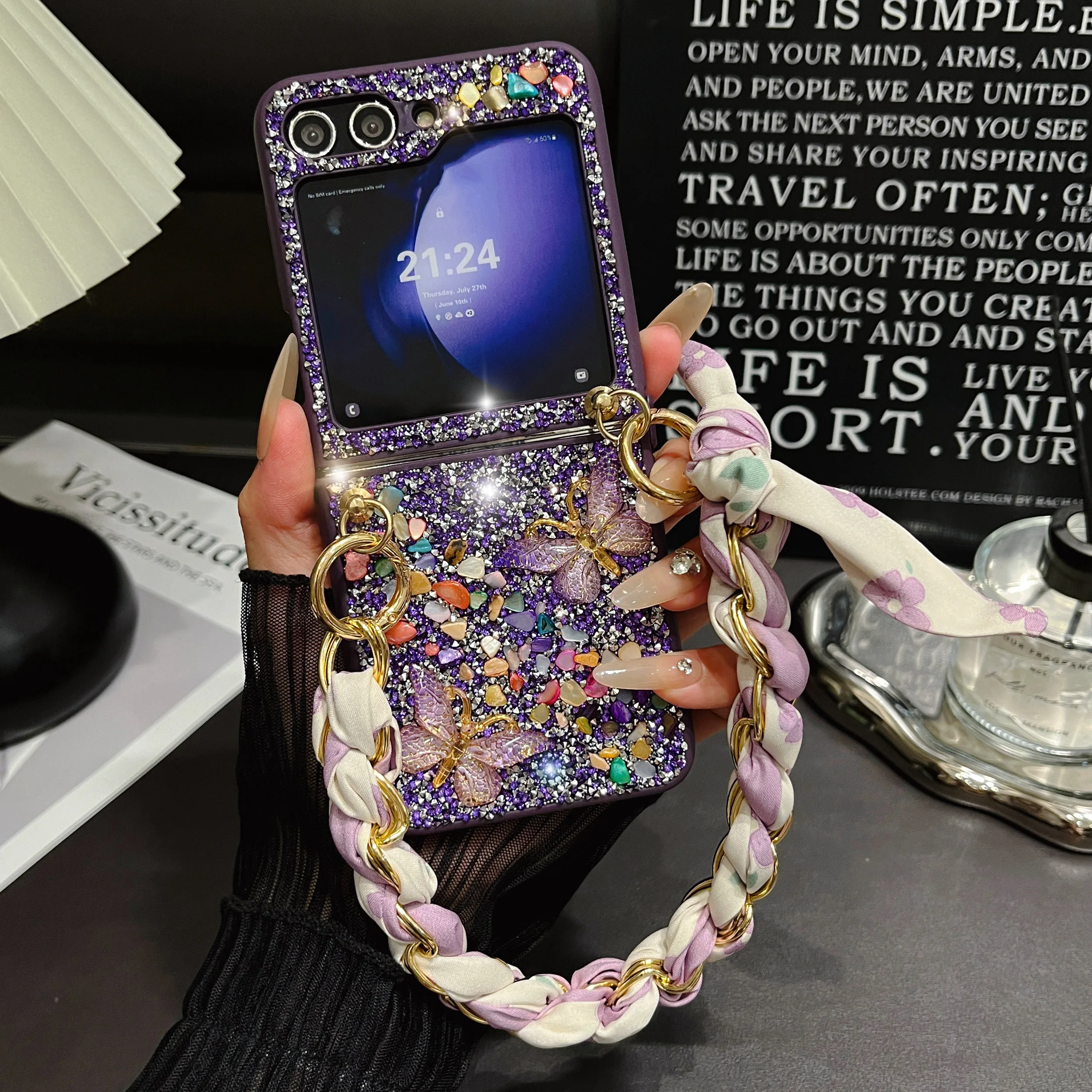 Custodia per telefono con glitter e pietra di diamanti con farfalla colorata per ragazza carina per Samsung Galaxy Z Flip 3 4 5 6