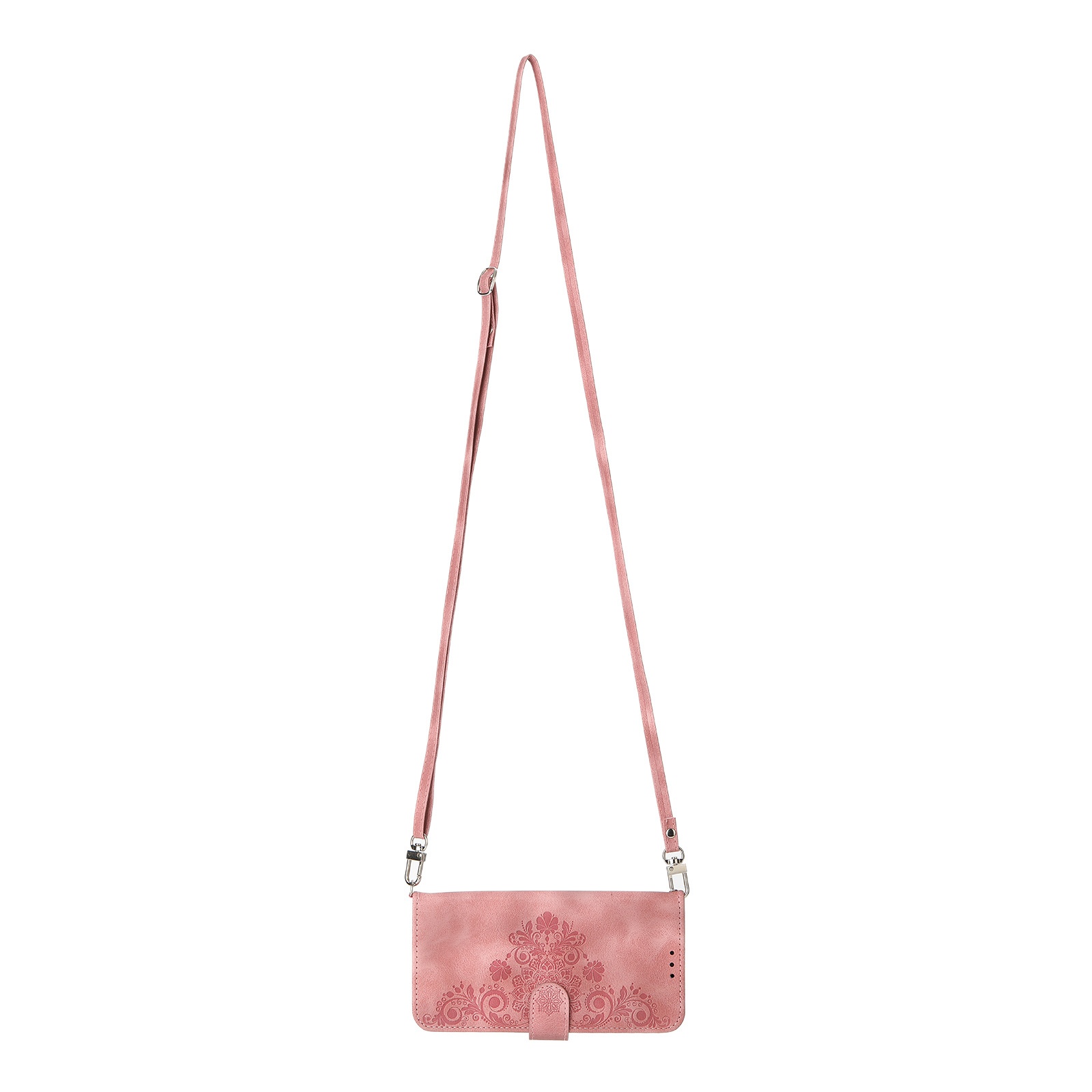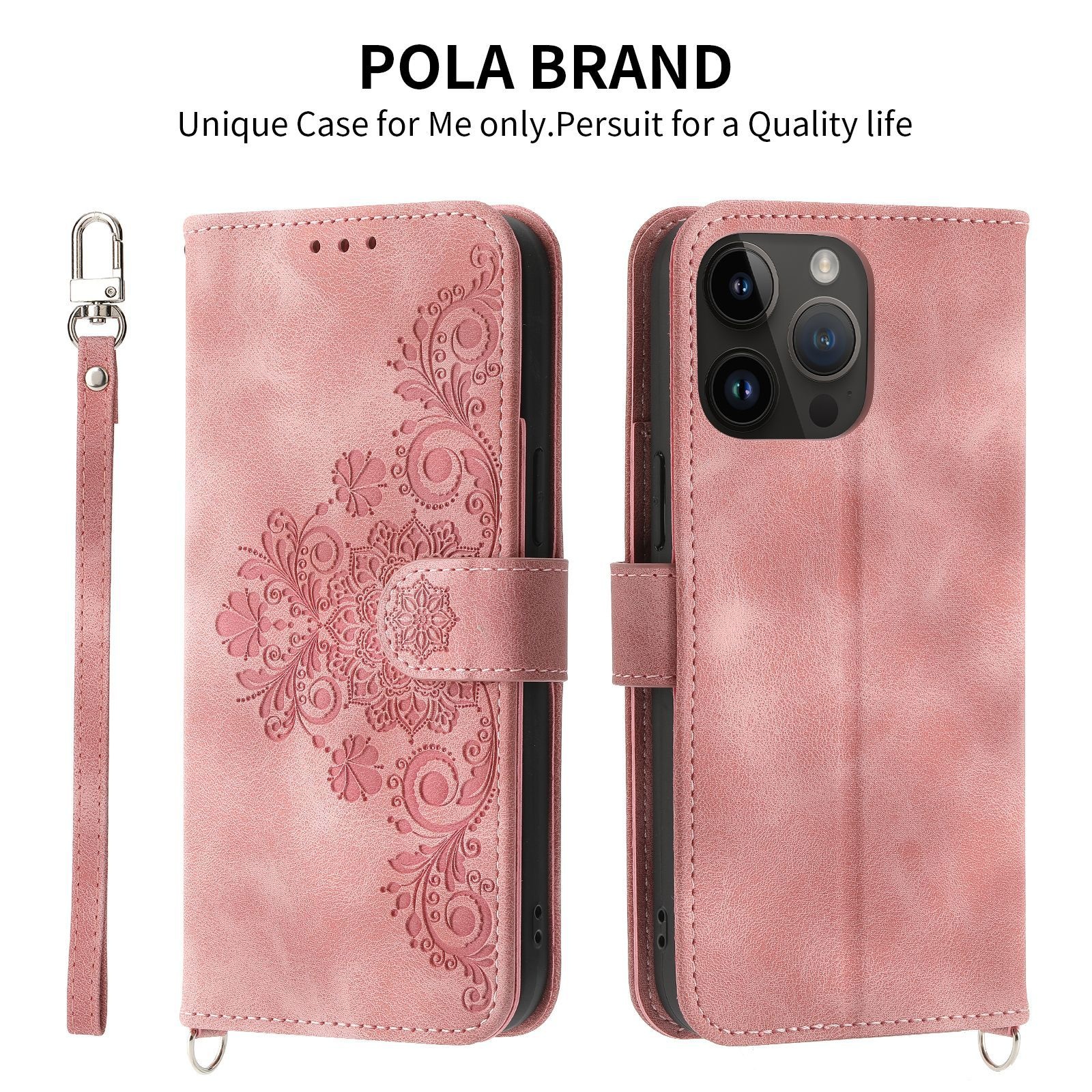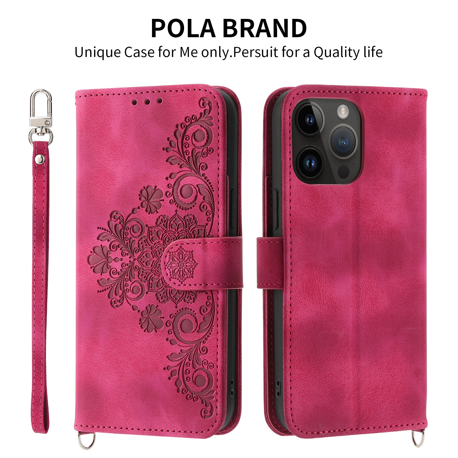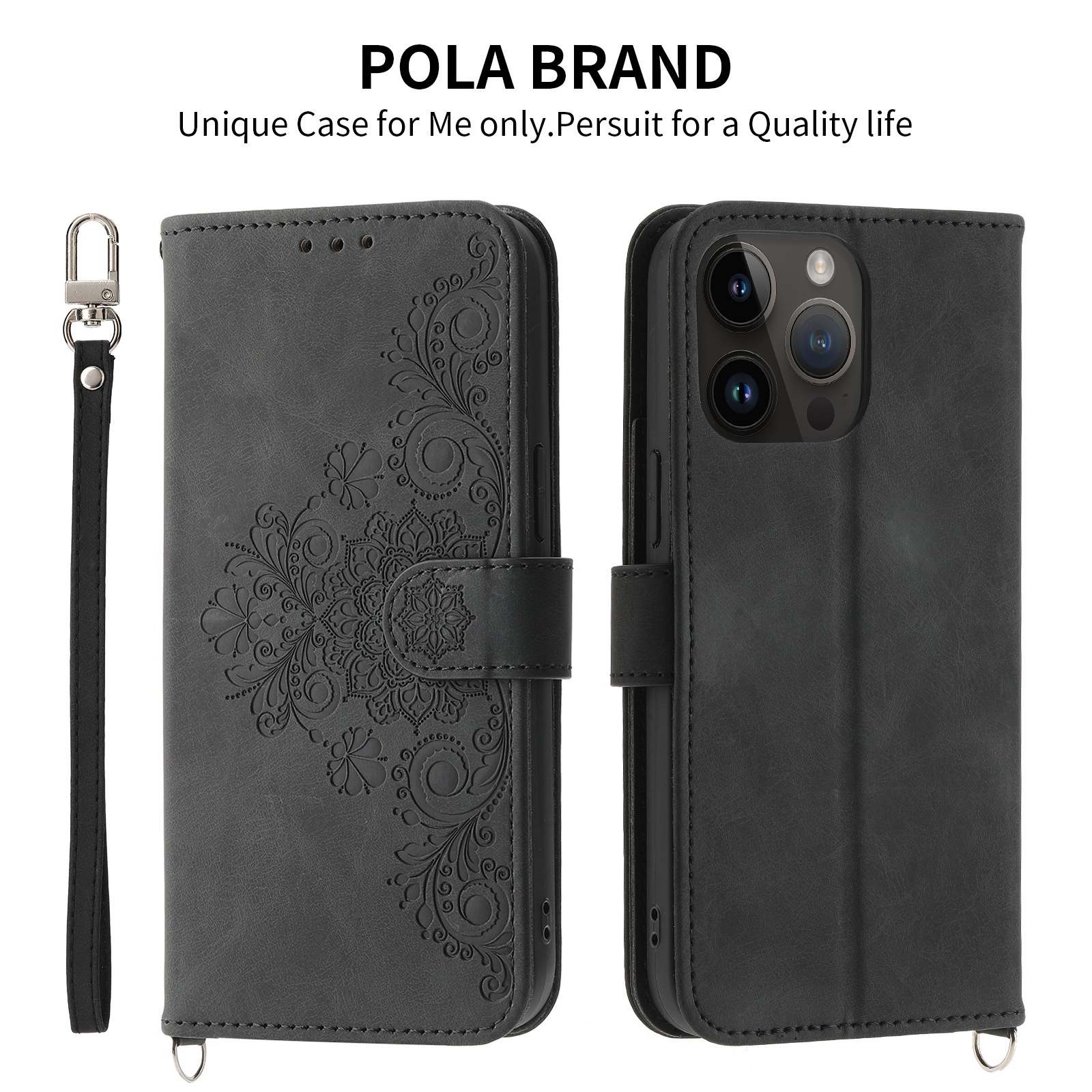 Custodia protettiva con slot per carte magnetiche in rilievo compatibile con iPhone 14 Pro Max, con tracolla e effetto pelle TechGlobe