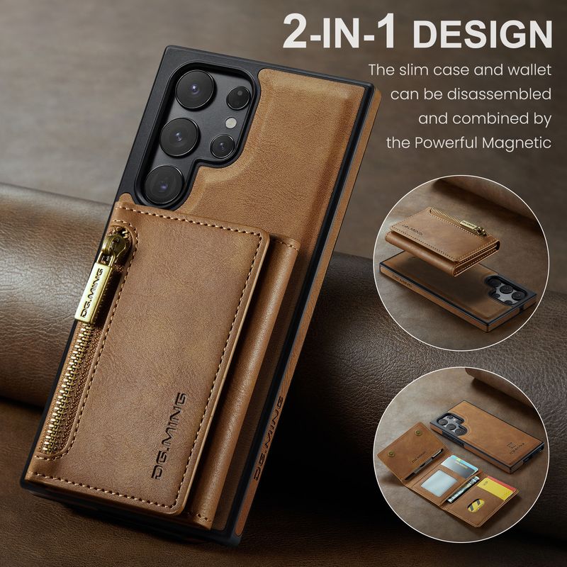 Independent brand Patented product DG.MING-M5 series Product introduction: 2-in-1 magnetic card holder mobile phone case Trifold zipper card holder + full side leather bottom case + strong magnetic separation design All models of M5 bottom case support wireless charging! Apple models are exposed, and other models are not exposed. The card holder comes with electronic shielding cloth and supports anti-theft swiping function. Patent information: 1. China appearance patent number: ZL202330560647.X 2. US appearance patent number: USD1013674S 3. EU appearance patent number: 015034044-0001