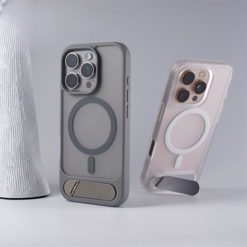 Custodia protettiva magnetica con supporto in metallo invisibile per iPhone 16 e iPhone 15 Pro Max.