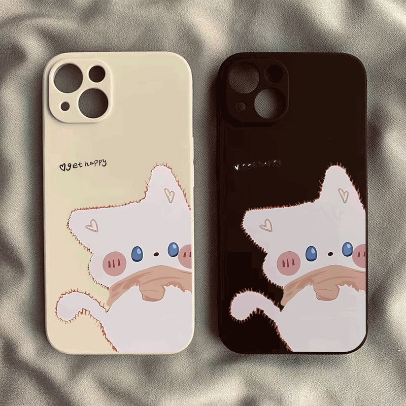 Custodia protettiva sottile in TPU per iPhone 13, 14, 15, 11, 16 Pro, 12 Mini, XS Max, in silicone con motivo a gatto.