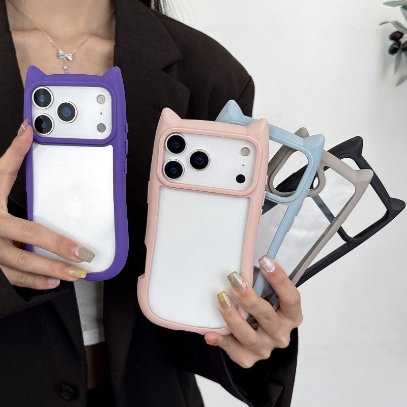3D Cat Ear Clear Case for IPhone 17 17Air 16 15 14 13 12 11 Pro Max 16 Plus 13 MiNi Transparent PC TPU Armor Protection Cover